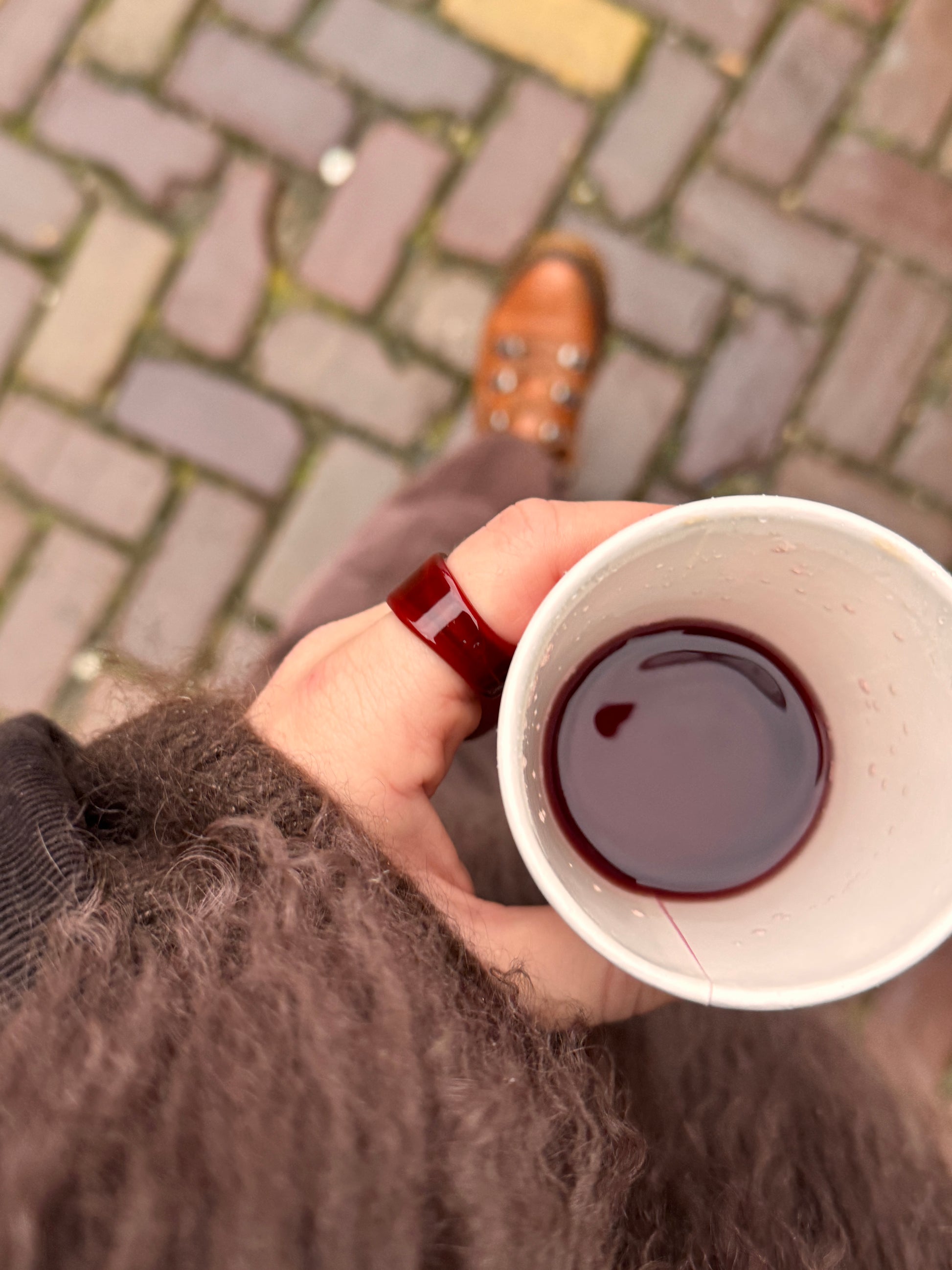 The Murano glass rings collection began as merchandise for Anett’s single Glass Half Full. Since then, she has continued crafting glass rings for special occasions and seasons. This particular color is something in between red wine and dark brown, and it is created exclusively for this winter season. Each ring is handmade by Anett herself, using techniques she learned under the guidance of the wonderful glass artist Raili Velt.